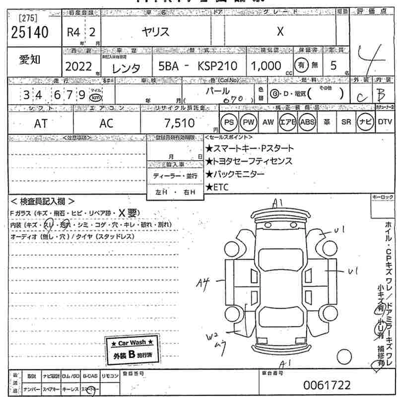 TOYOTA YARIS 2022 г., лот № 25140