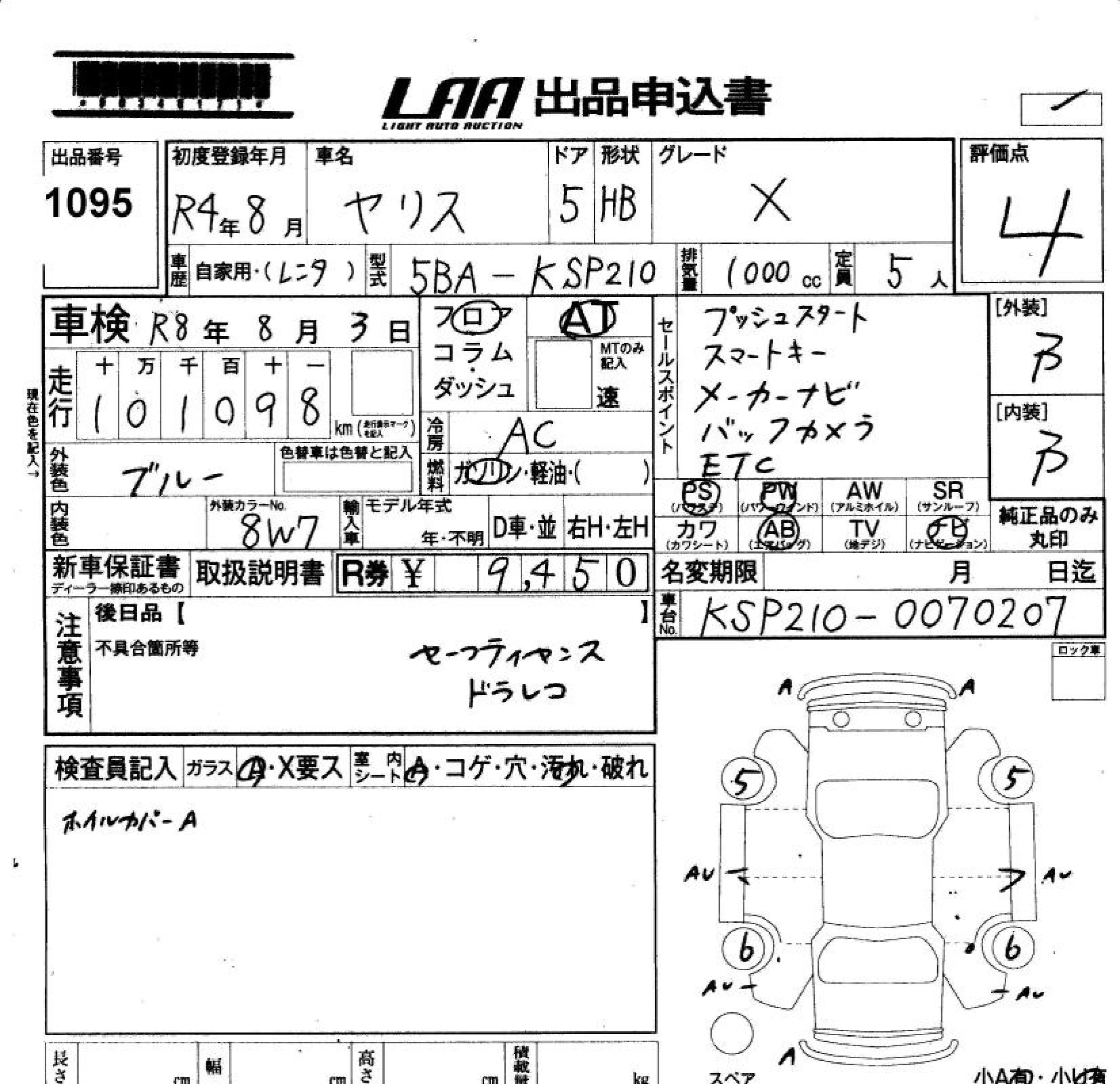 Статус не продан Лот 1095 Аукцион LAA Okayama Дата аукциона 23.01.2026