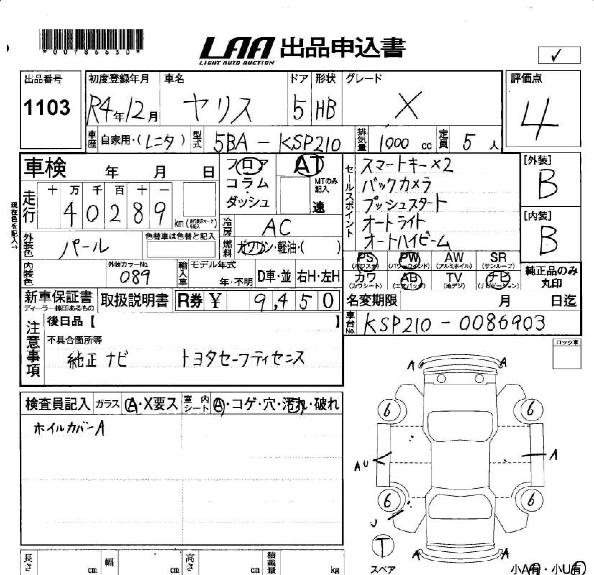 Статус не продан Лот 1103 Аукцион LAA Okayama Дата аукциона 23.01.2026