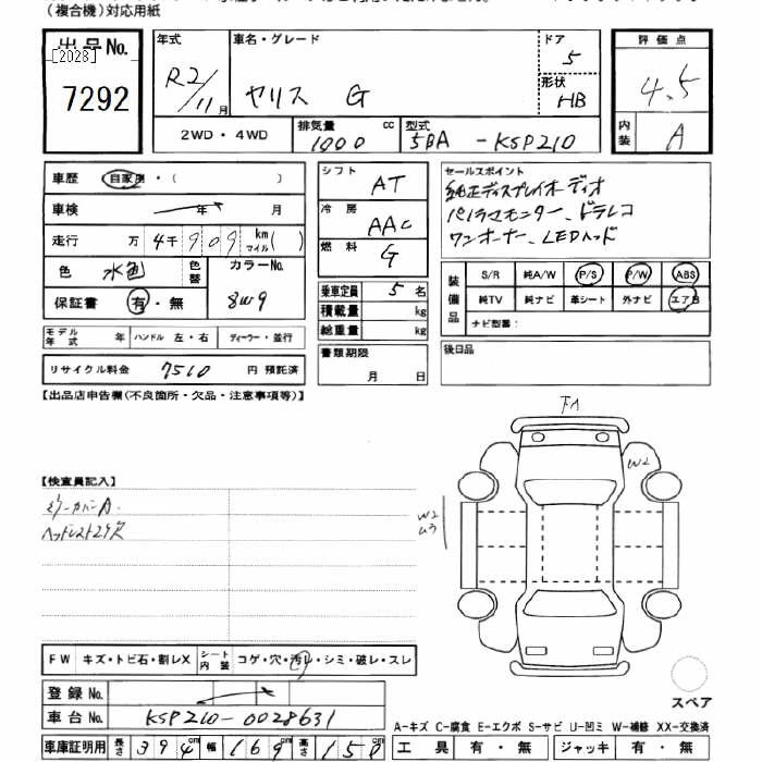 TOYOTA YARIS 2020 г., лот № 7292