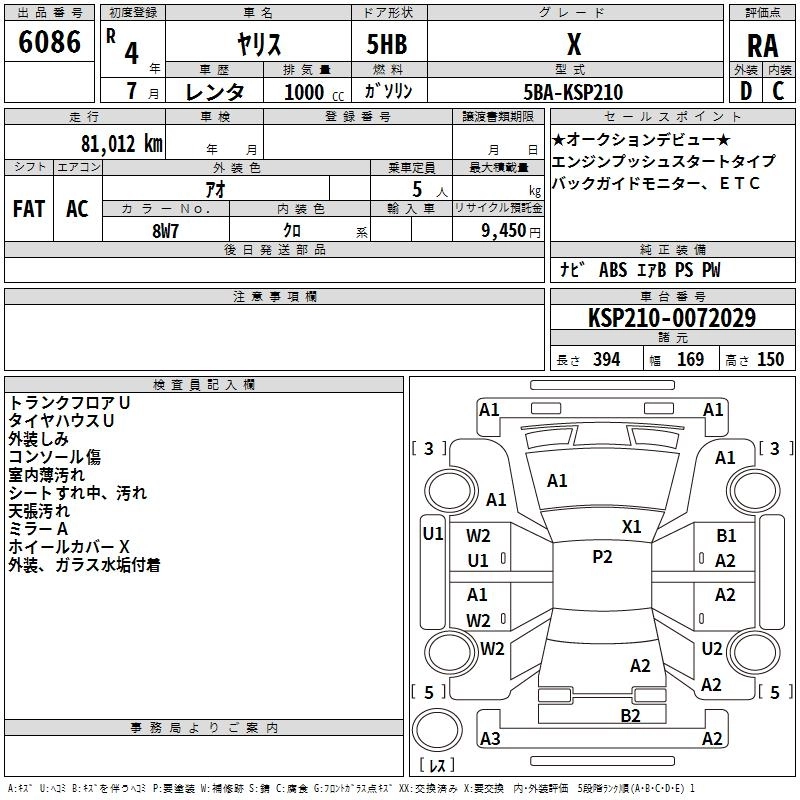* Фрахт (плата за перевозку авто морским путём из Японии во Владивосток):- 60 000 ¥.