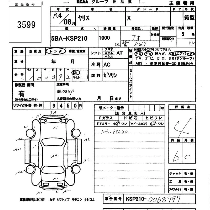 Статус выставлен на аукцион Лот 3599 Аукцион KCAA M Kyushu Дата аукциона 11.03.2026