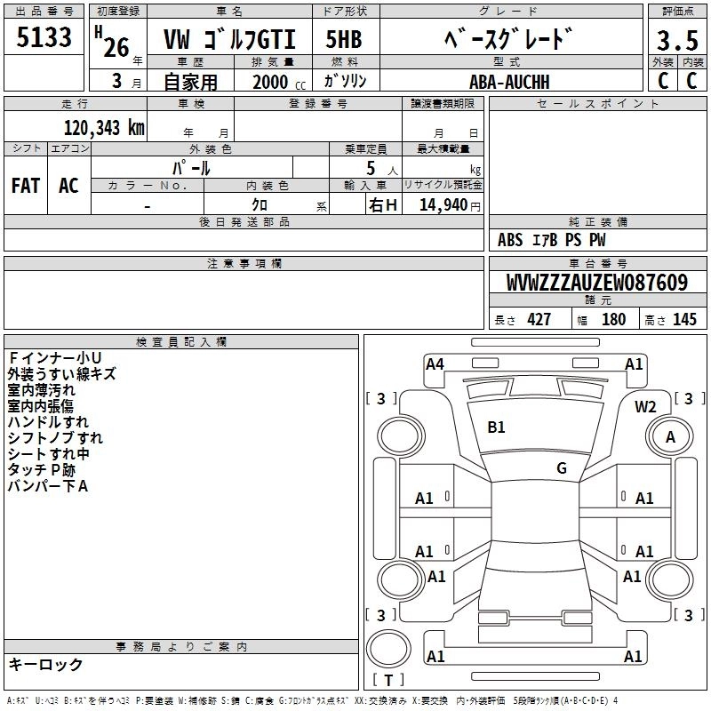 Год выпуска2014 Пробег 120 000 км КузовAUCHH Комплектация BASE GRADE