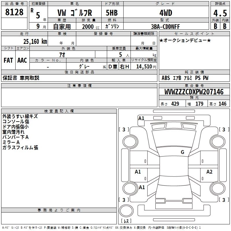 Статус выставлен на аукцион Лот 8128 Аукцион TAA Chubu Дата аукциона 12.03.2026