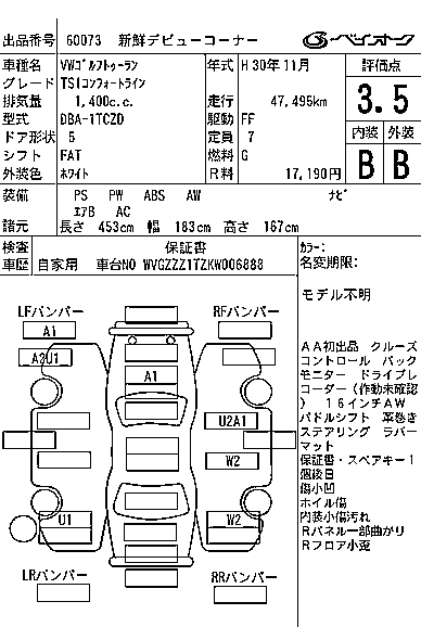 VOLKSWAGEN GOLF TOURAN 2018 г., лот № 60073