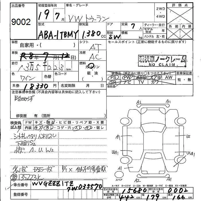 VOLKSWAGEN GOLF TOURAN 2007 г., лот № 9002