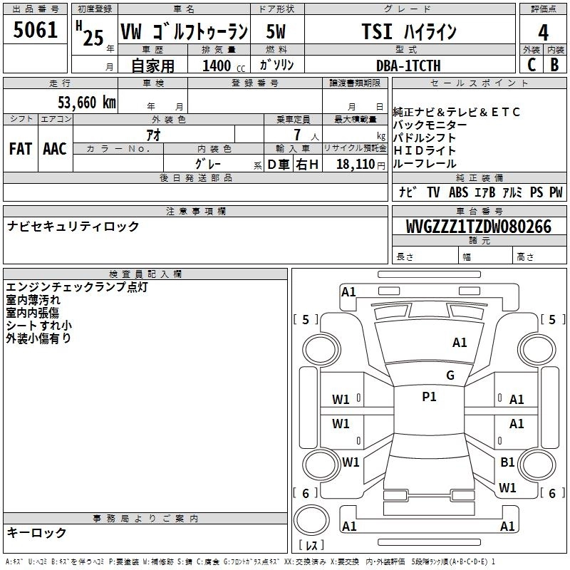 VOLKSWAGEN GOLF TOURAN 2013 г., лот № 5061