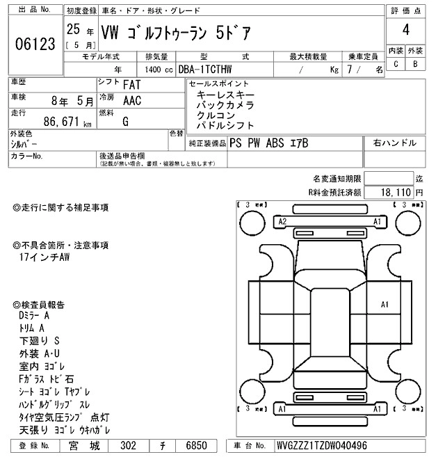 Статус продан Лот 6123 Аукцион ARAI Sendai Дата аукциона 23.01.2026