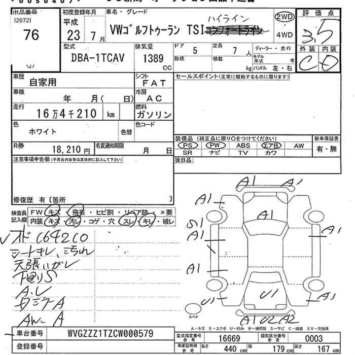 VOLKSWAGEN GOLF TOURAN 2011 г., лот № 76