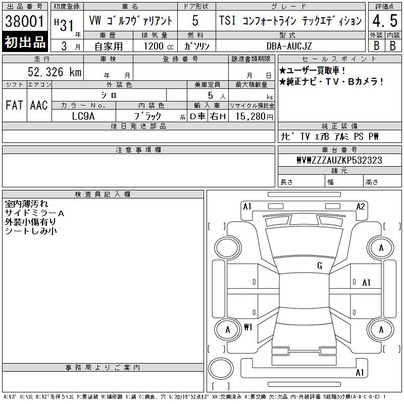 VOLKSWAGEN GOLF VARIANT 2019 г., лот № 38001