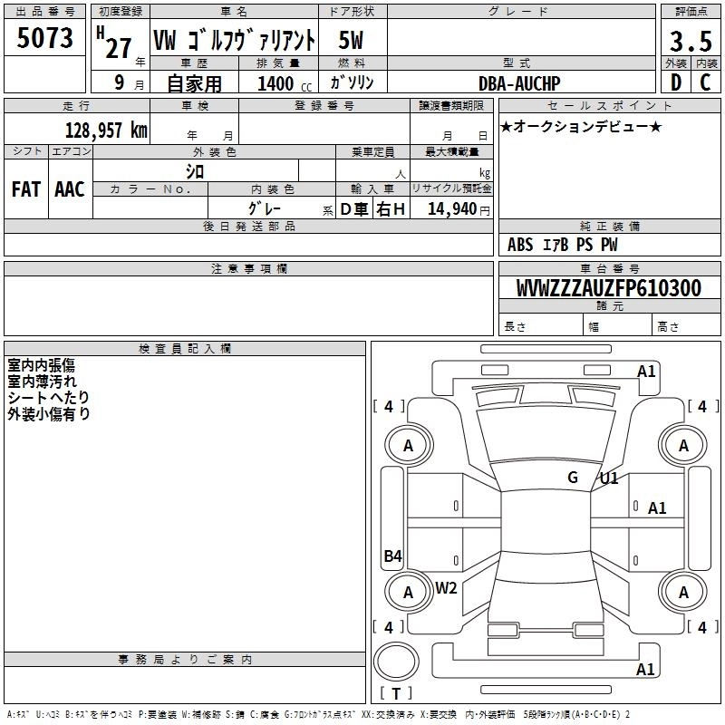 VOLKSWAGEN GOLF VARIANT 2015 г., лот № 5073
