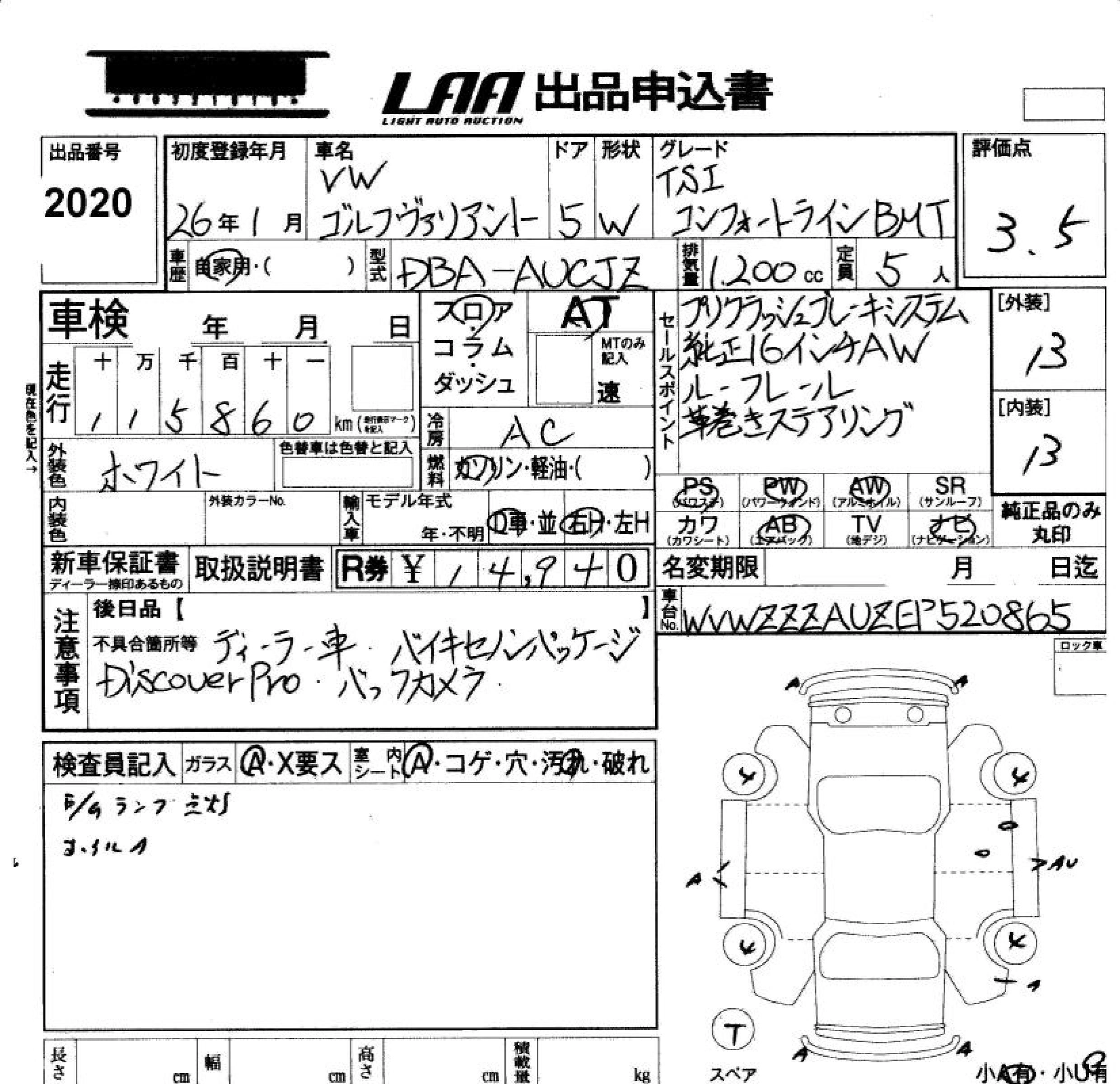 Статус выставлен на аукцион Лот 2020 Аукцион LAA Okayama Дата аукциона 24.10.2025