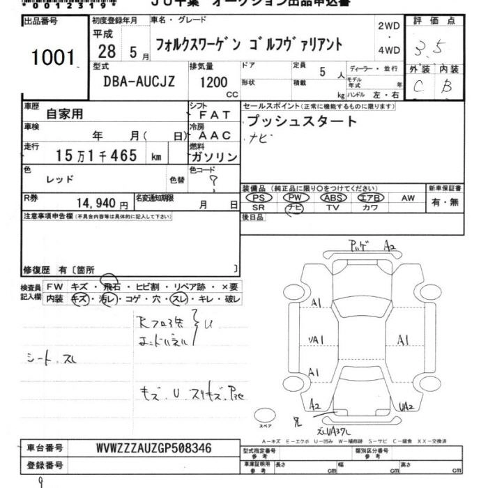 VOLKSWAGEN GOLF VARIANT 2016 г., лот № 1001