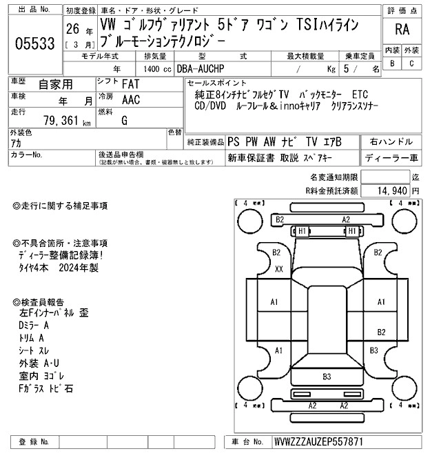 VOLKSWAGEN GOLF VARIANT 2014 г., лот № 5533