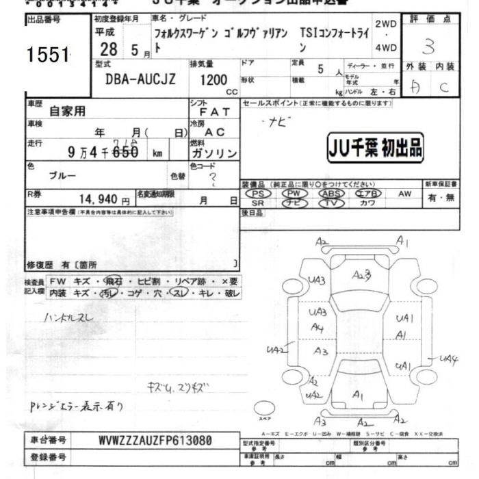 VOLKSWAGEN GOLF VARIANT 2016 г., лот № 1551