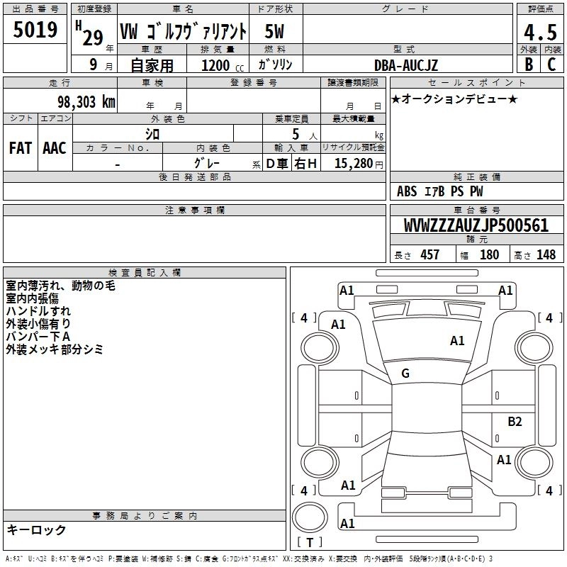 Статус выставлен на аукцион Лот 5019 Аукцион TAA Shikoku Дата аукциона 10.03.2026