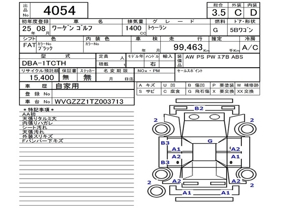 VOLKSWAGEN GOLF 2013 г., лот № 4054