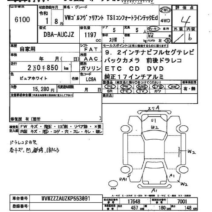 VOLKSWAGEN GOLF 2019 г., лот № 6100