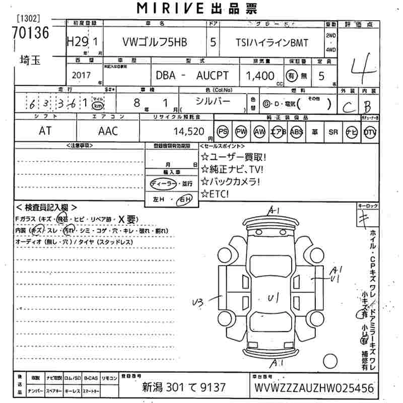 VOLKSWAGEN GOLF 2017 г., лот № 70136