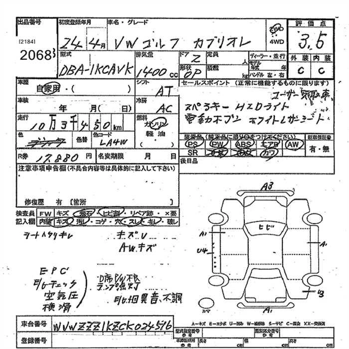 VOLKSWAGEN GOLF 2012 г., лот № 2068