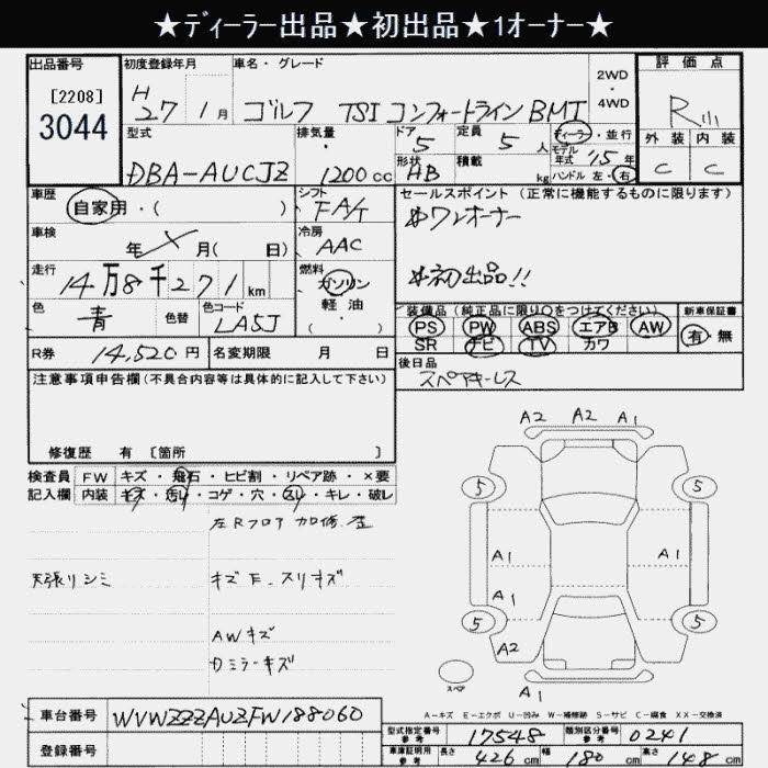 VOLKSWAGEN GOLF 2015 г., лот № 3044