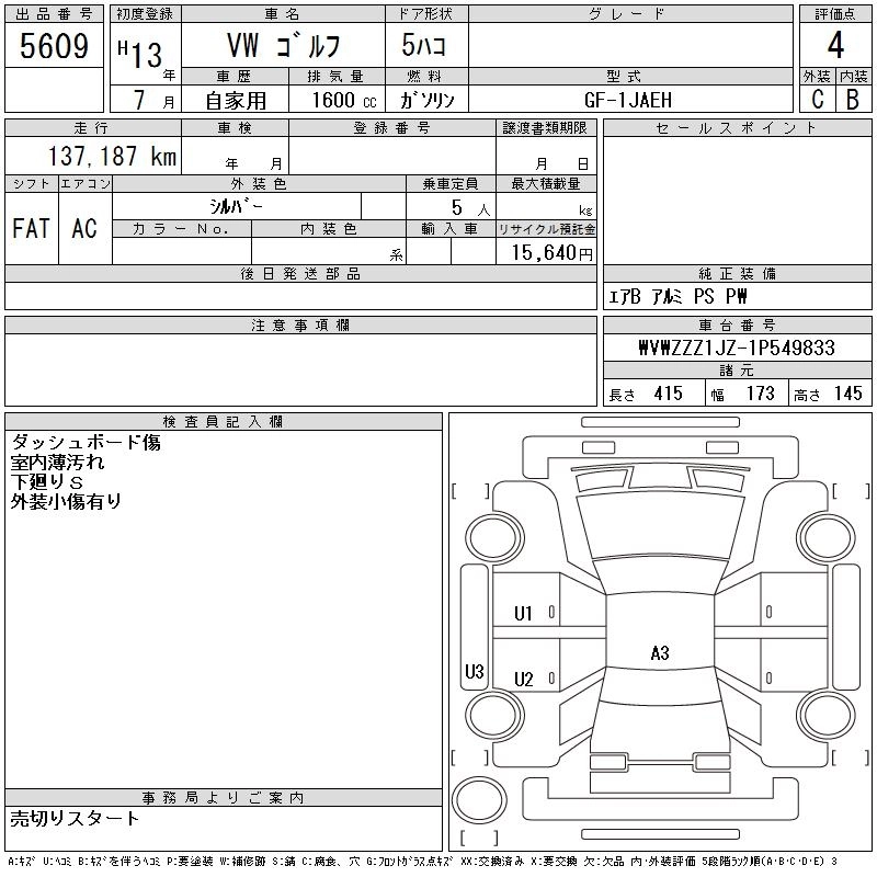 VOLKSWAGEN GOLF 2001 г., лот № 5609