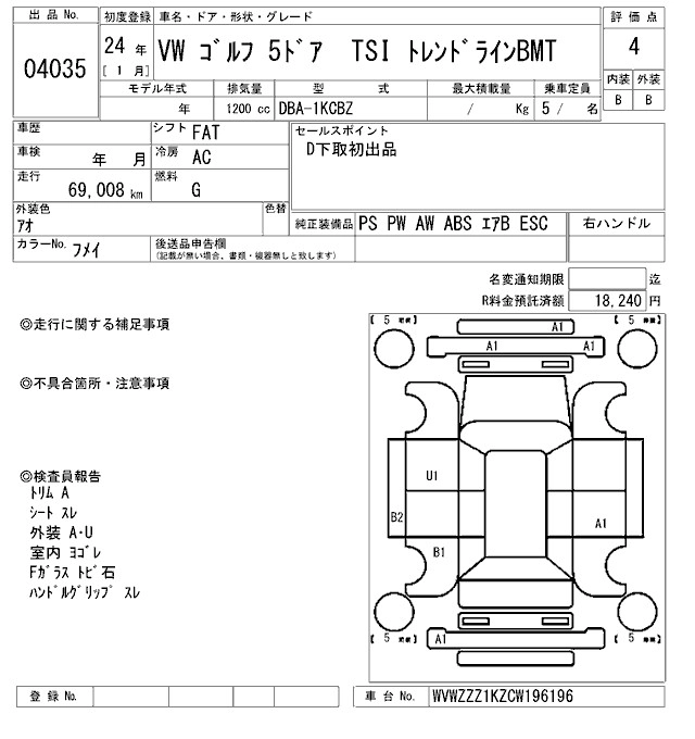 VOLKSWAGEN GOLF 2012 г., лот № 4035