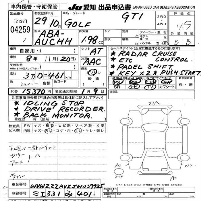 VOLKSWAGEN GOLF 2017 г., лот № 4259