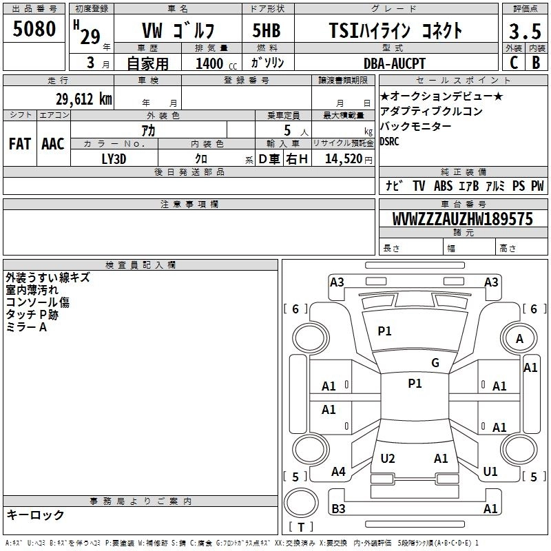 VOLKSWAGEN GOLF 2017 г., лот № 5080