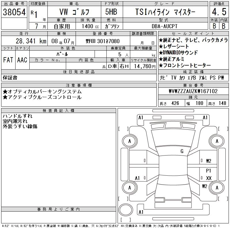 VOLKSWAGEN GOLF 2019 г., лот № 38054