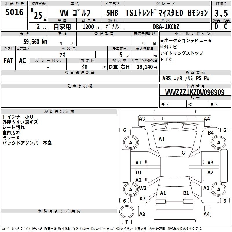 VOLKSWAGEN GOLF 2013 г., лот № 5016