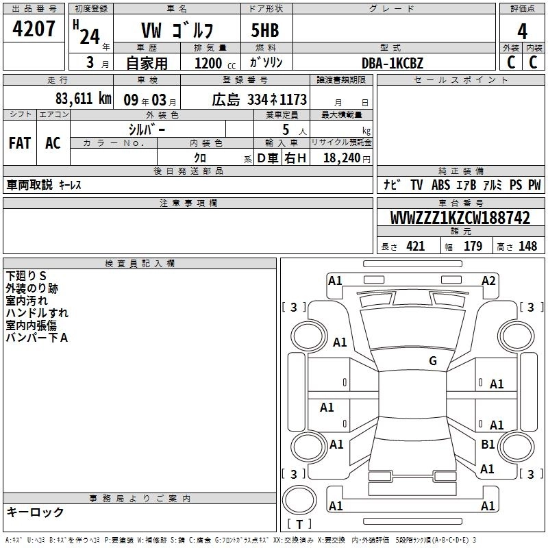 VOLKSWAGEN GOLF 2012 г., лот № 4207