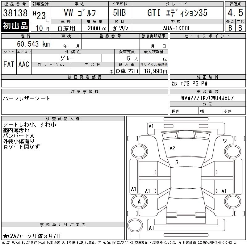 Статус выставлен на аукцион Лот 38138 Аукцион CAA Chubu Дата аукциона 11.03.2026