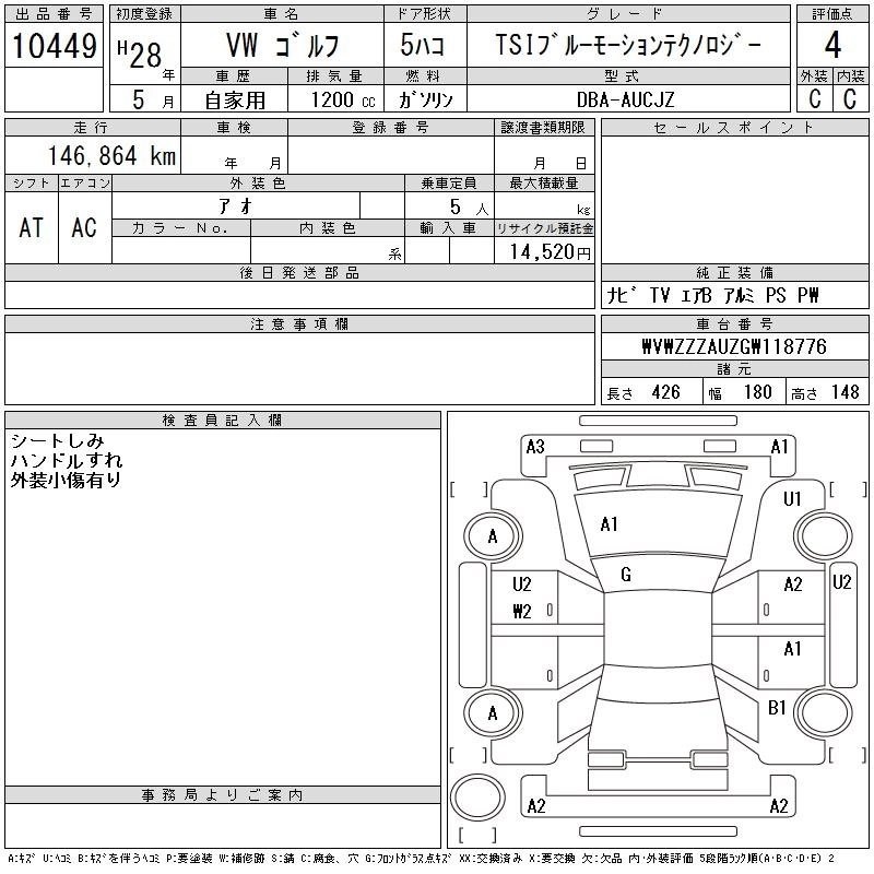 VOLKSWAGEN GOLF 2016 г., лот № 10449