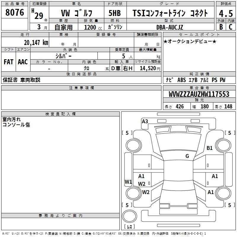 Статус выставлен на аукцион Лот 8076 Аукцион TAA Chubu Дата аукциона 12.03.2026