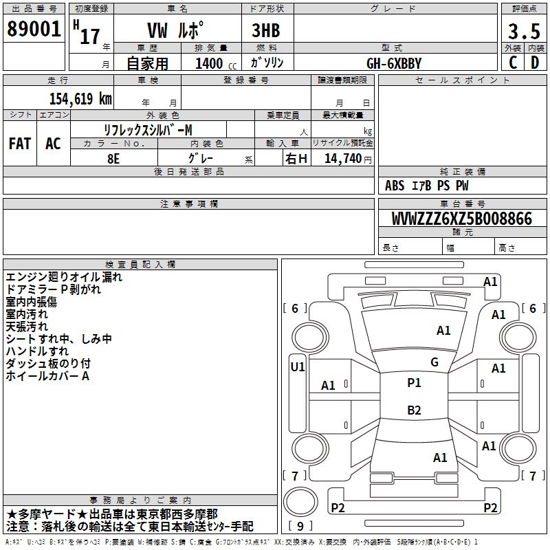 VOLKSWAGEN LUPO 2005 г., лот № 89001