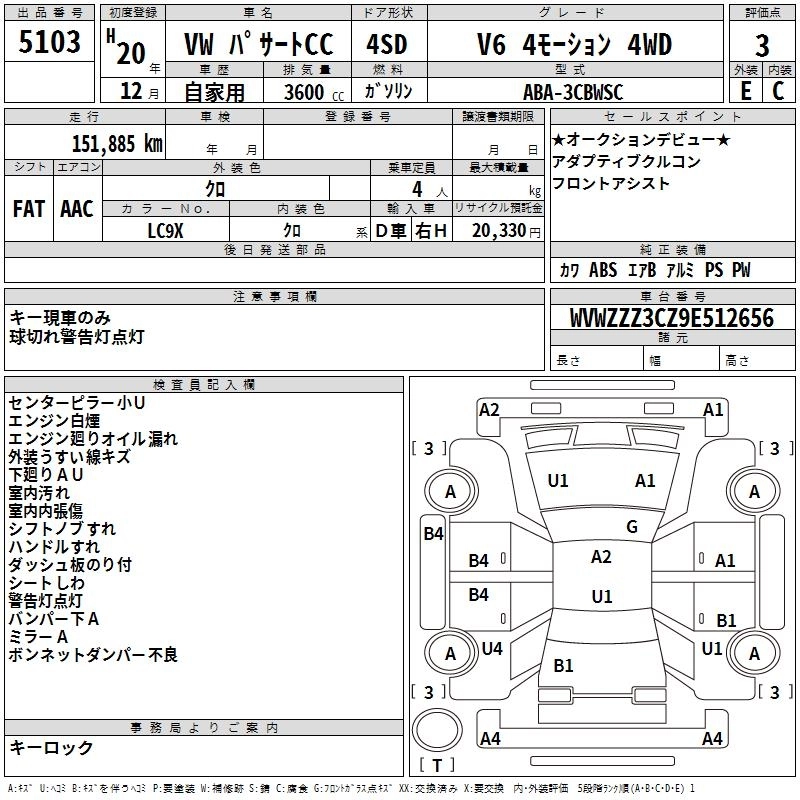 VOLKSWAGEN PASSAT CC 2008 г., лот № 5103