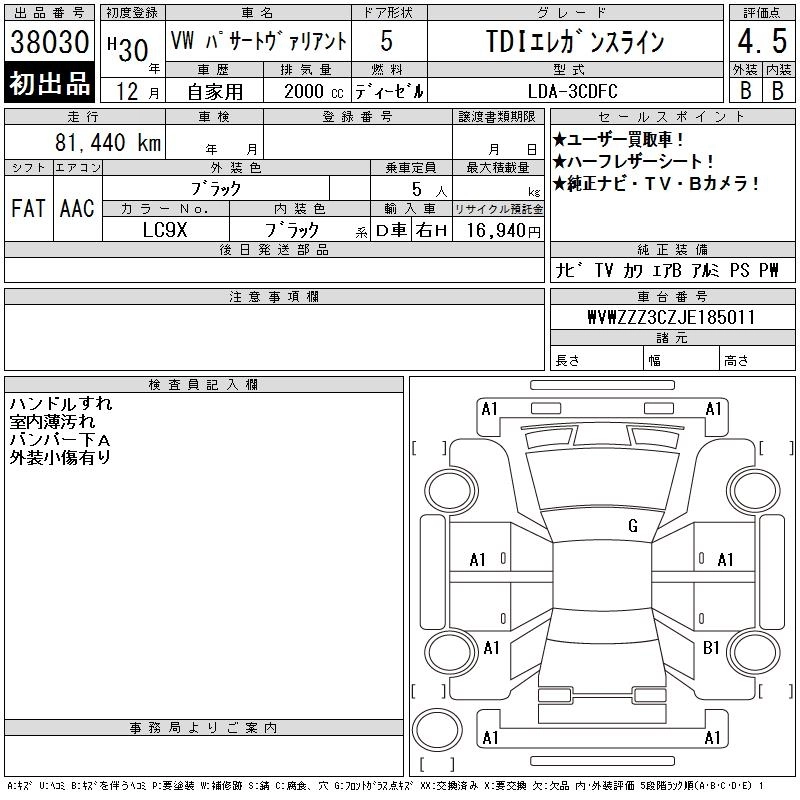 VOLKSWAGEN PASSAT VARIANT 2018 г., лот № 38030