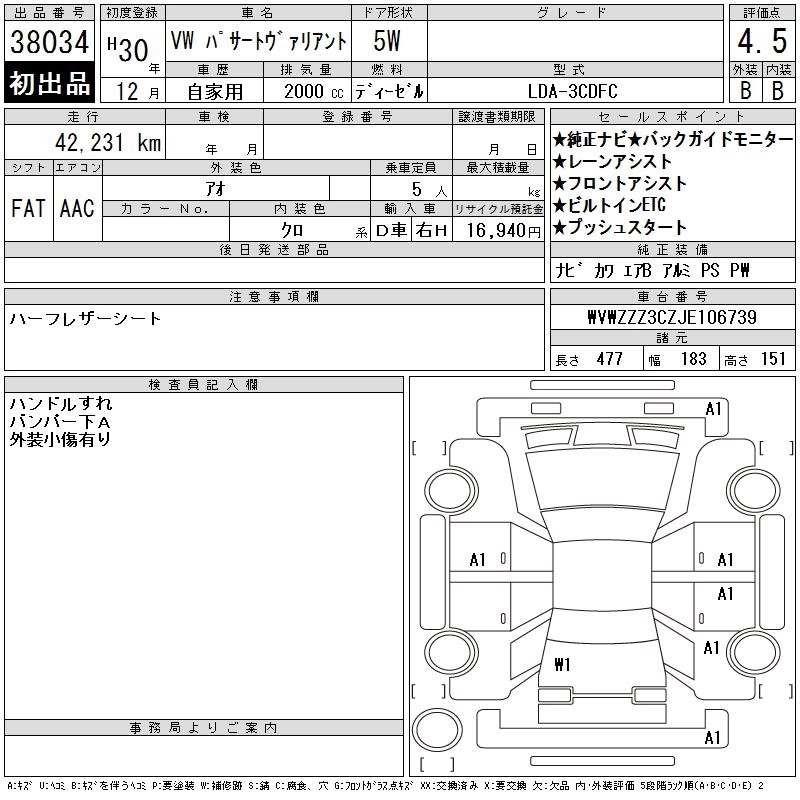VOLKSWAGEN PASSAT VARIANT 2018 г., лот № 38034