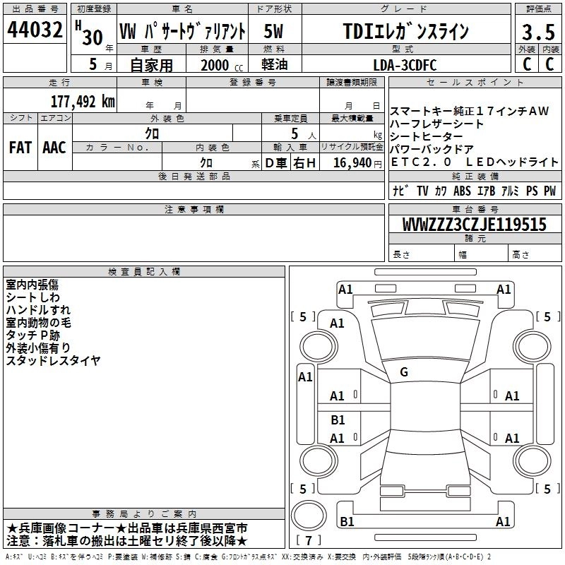 VOLKSWAGEN PASSAT VARIANT 2018 г., лот № 44032