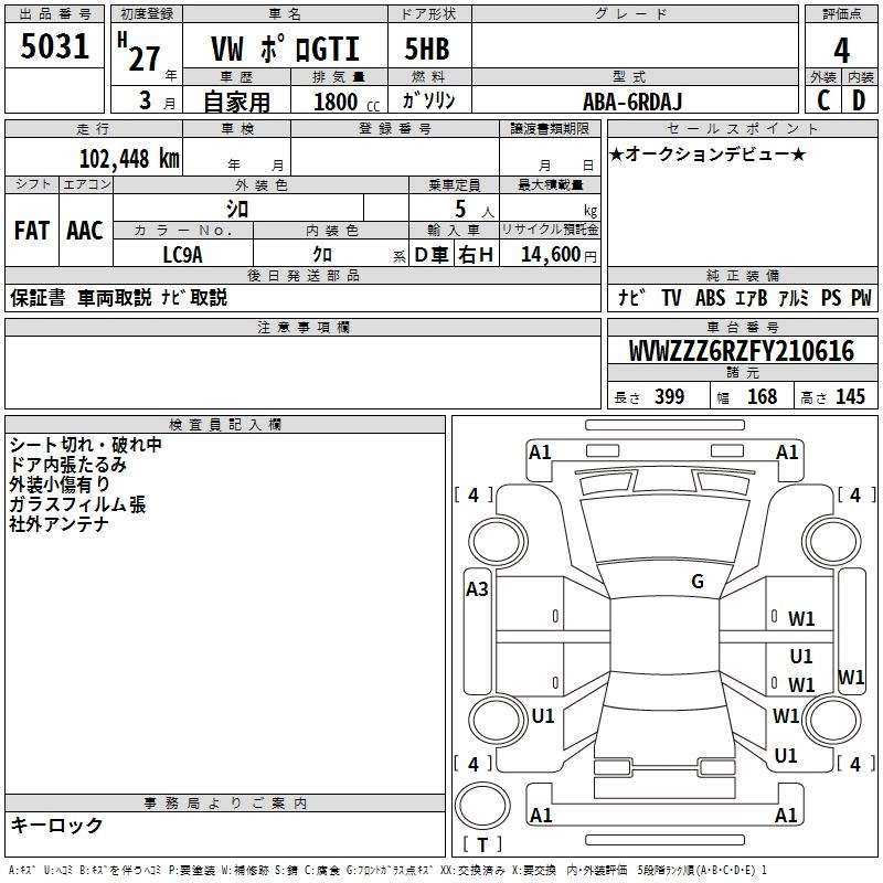 VOLKSWAGEN POLO GTI 2015 г., лот № 5031