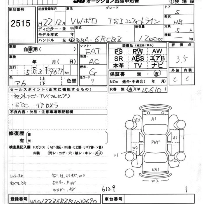 VOLKSWAGEN POLO 2010 г., лот № 2515