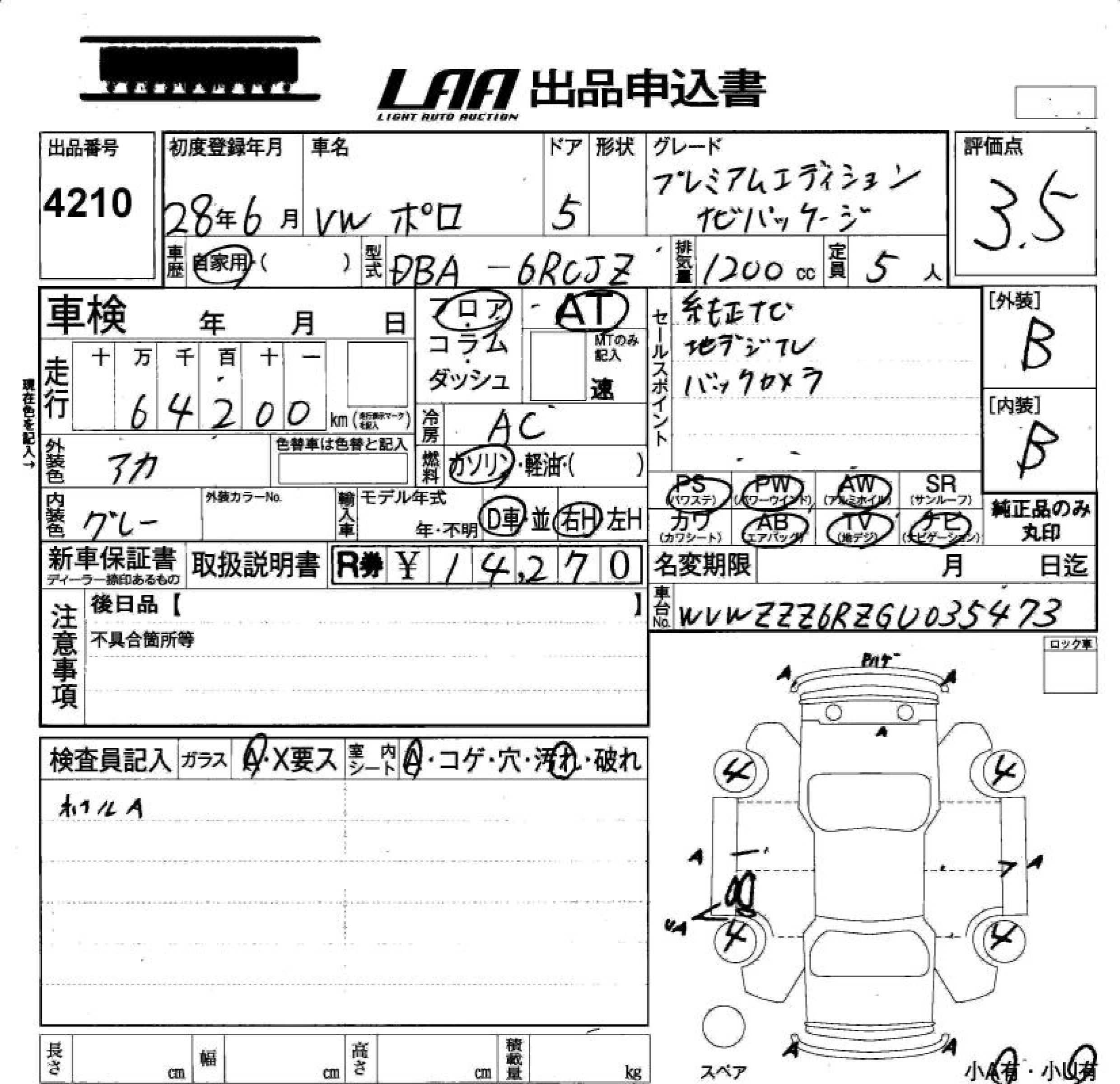 VOLKSWAGEN POLO 2016 г., лот № 4210