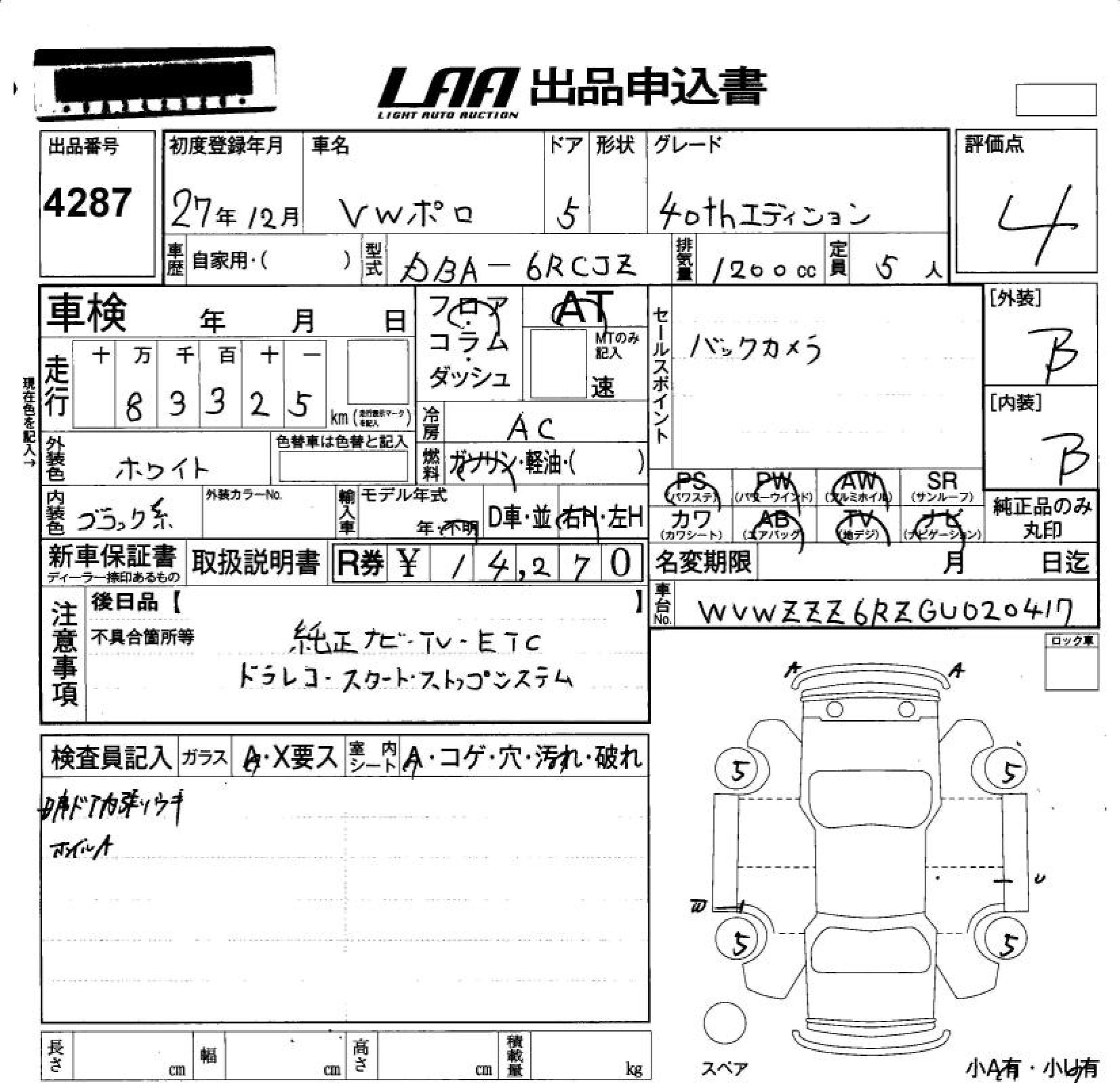 Статус продан Лот 4287 Аукцион LAA Okayama Дата аукциона 23.01.2026