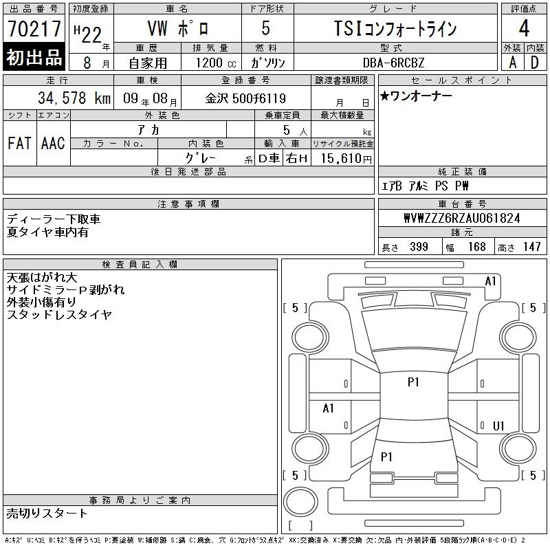 VOLKSWAGEN POLO 2010 г., лот № 70217