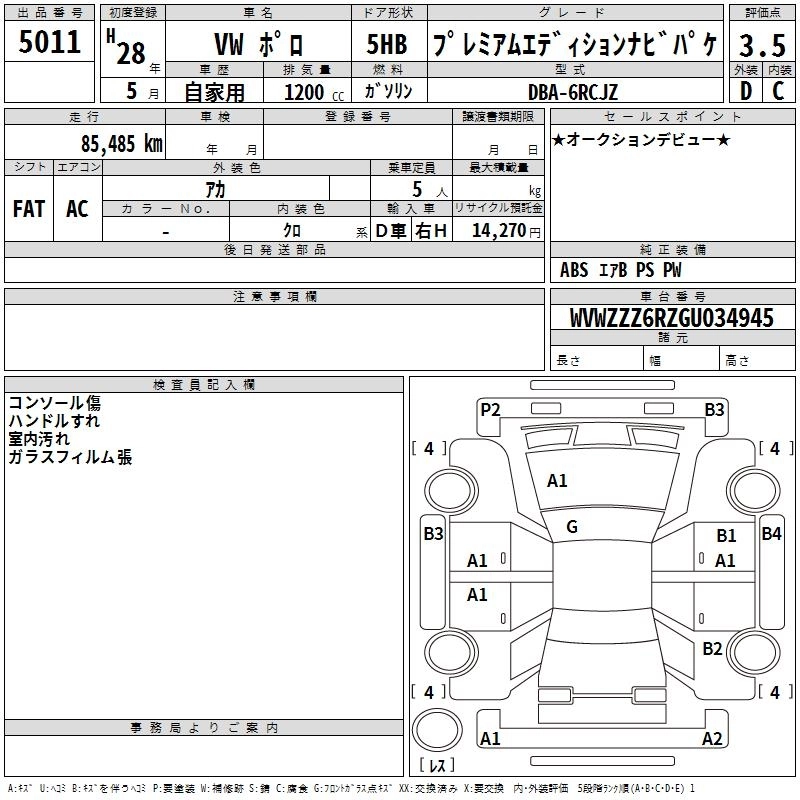 VOLKSWAGEN POLO 2016 г., лот № 5011