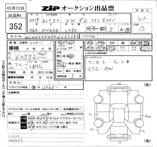Статус выставлен на аукцион Лот 352 Аукцион ZIP Osaka Дата аукциона 12.03.2026