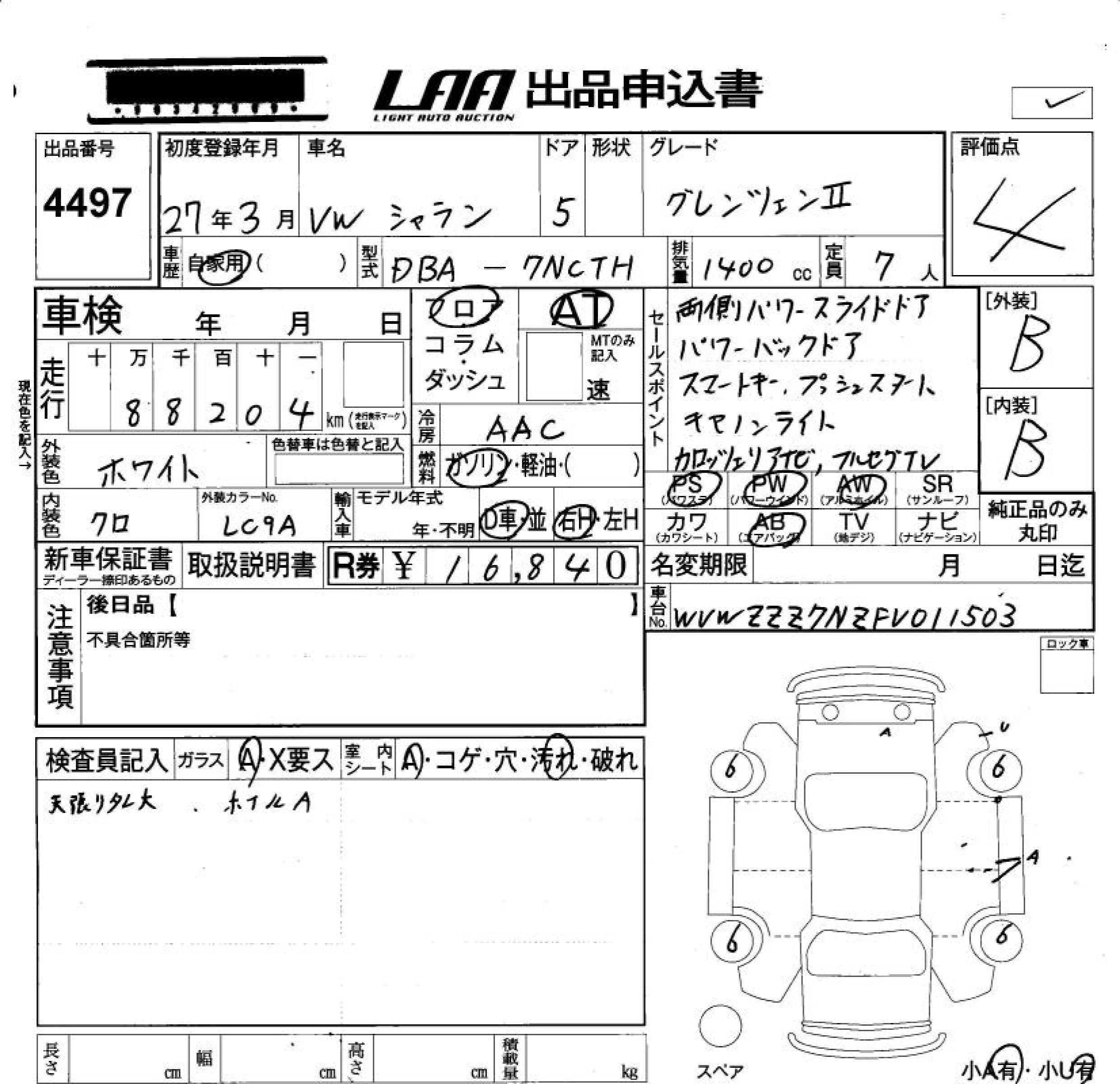 VOLKSWAGEN SHARAN 2015 г., лот № 4497