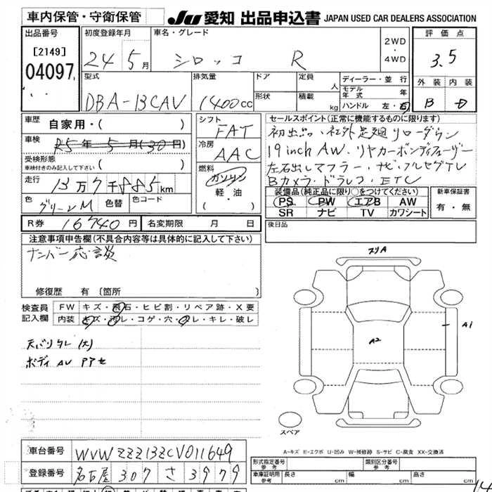 VOLKSWAGEN SIROCCO 2012 г., лот № 4097