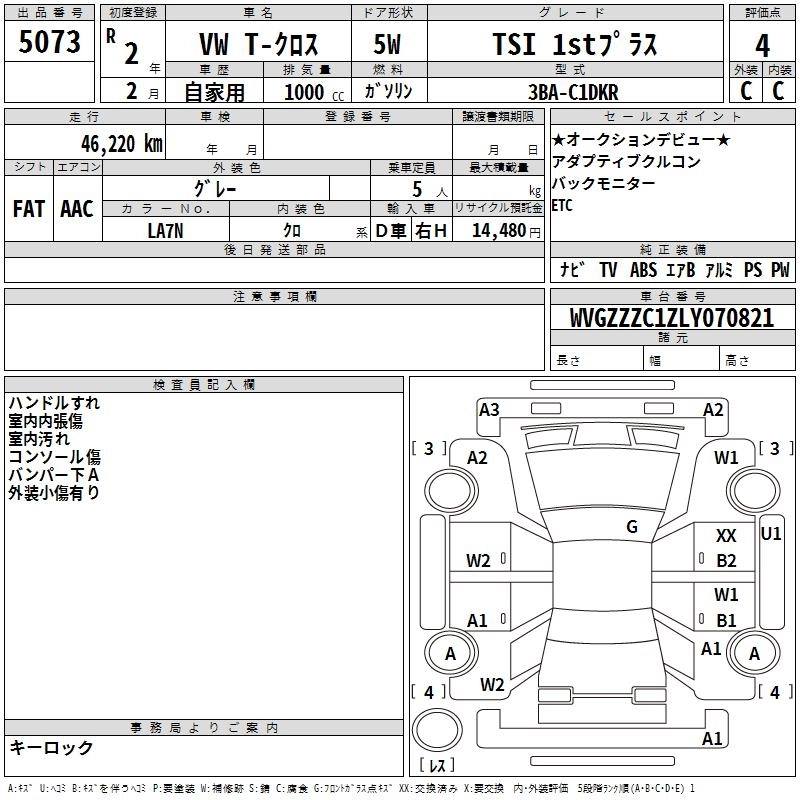 VOLKSWAGEN T-CROSS 2020 г., лот № 5073